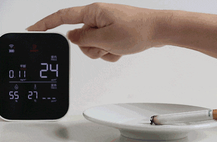為了測試西睿空氣檢測儀對空氣的檢測靈敏度,我們點燃香煙,隨著香煙燃燒的煙霧放出,此時手動按底座按鈕或下拉APP頁面刷新,西睿顯示的PM2.5數值立即隨之不斷攀升,可見西睿對于空氣的感應很靈敏。