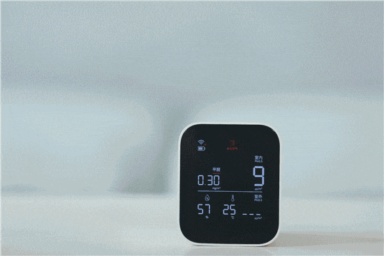 所有監測數據都是呈現在底座顯示面板上,甲醛濃度、室內PM2.5濃度、室外PM2.5濃度、溫度、相對濕度等各空氣參數數值,在顯示屏上均清晰可見。